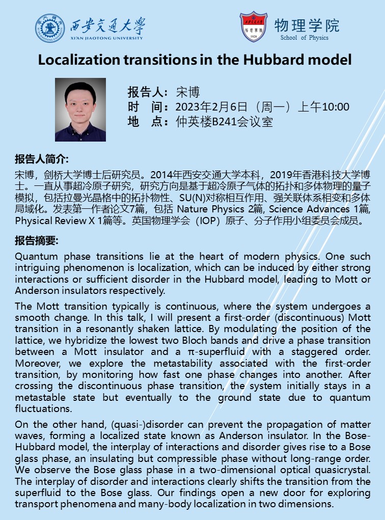 时间 2023年2月6日(周一)上午10:00 地点 仲英楼B241会议室