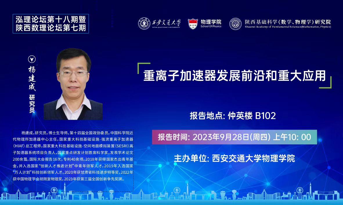 【泓理论坛第十八期暨陕西数理论坛第七期】——重离子加速器发展前沿和重大应用