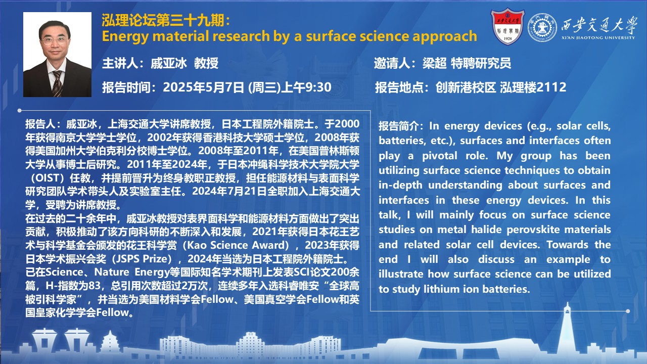 【泓理论坛第三十九期】—— Energy material research by a surface science approach