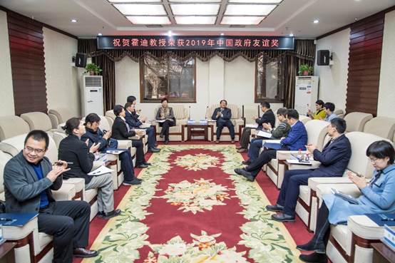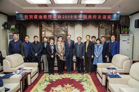 12月9日上午,陕西省科技厅副厅长兰壮丽、外国专家服务处处长马玲一行来校为我院霍迪教授颁发2019年度“三秦友谊奖”。副校长席光,AC米兰官方网站院长高宏、副院长赵永涛,国际处副处长韦学勇、雷艳君等出席颁奖仪式。国际处处长贺长中主持颁奖仪式。