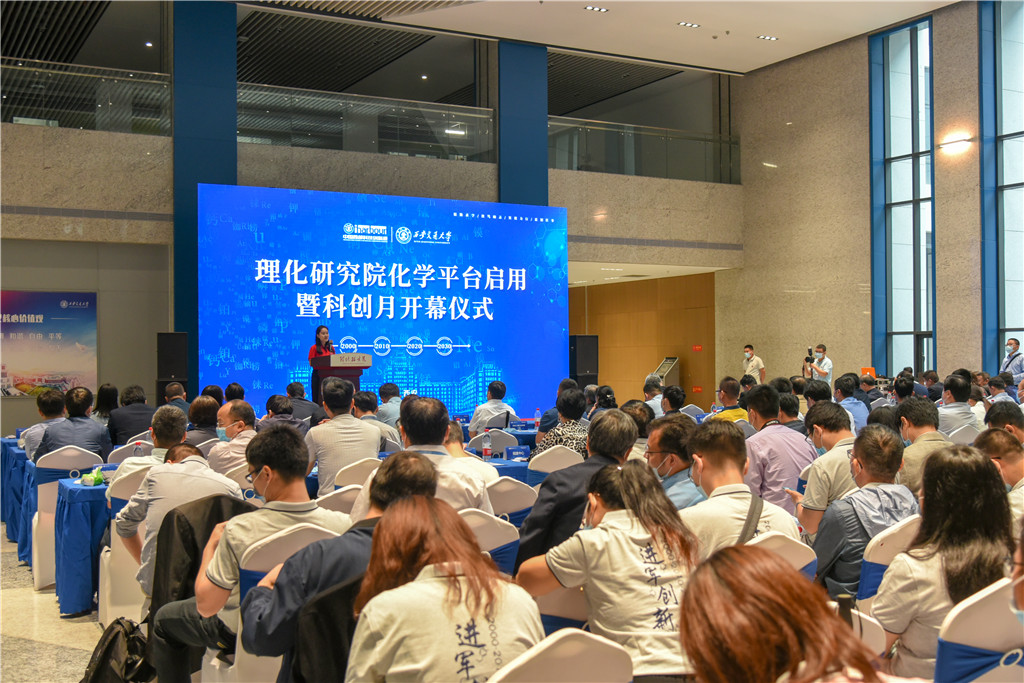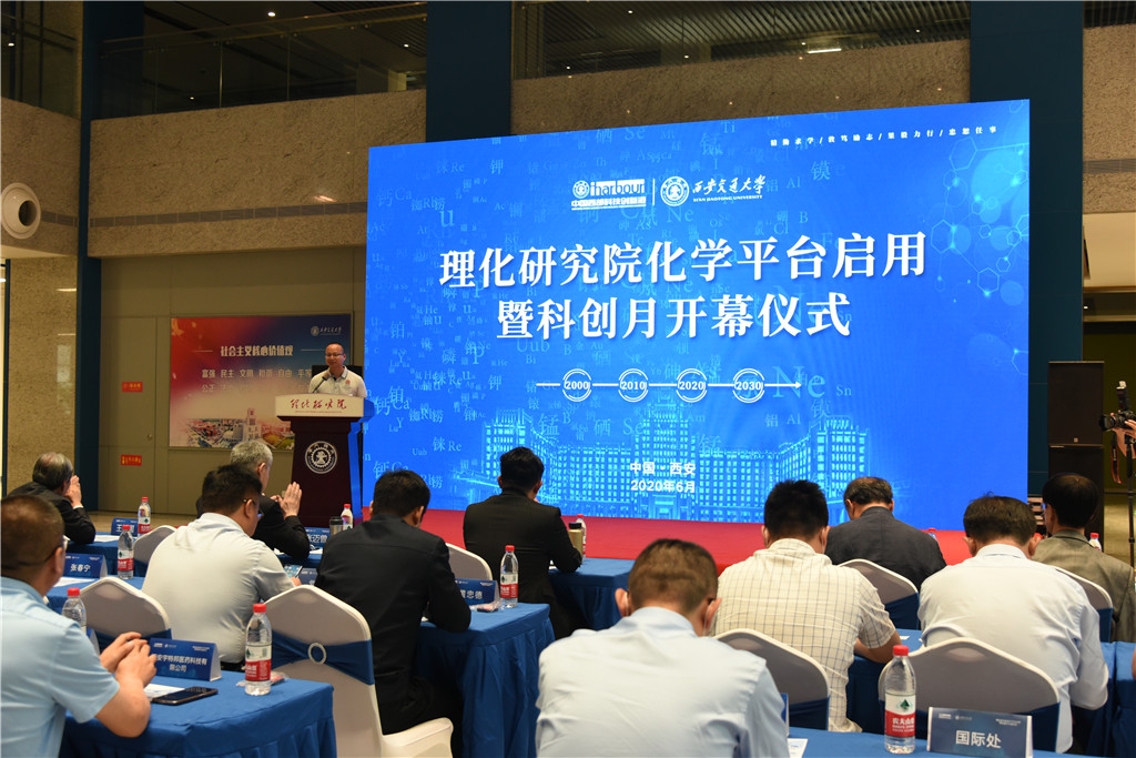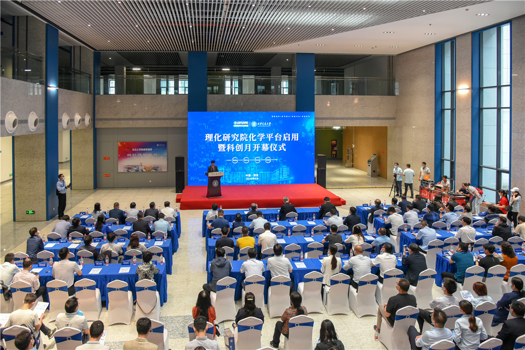 2019年5月18日,理化研究院入驻创新港,经过一年的紧张建设,研究院化学平台全面启用。6月16日上午11时,研究院在泓润楼西门大厅举行了化学平台启用暨科创月开幕仪式。AC米兰官方网站党委书记张迈曾,校长王树国,副校长荣命哲、王铁军,校党委副书记赵军武,校党委常委、宣传部部长成进,陕西省工信厅、沣西新城西咸新区创新港管理服务办公室、陕西省汽车工业协会、陕西省汽车产业发展研究中心、全通集团、中核陕西铀浓缩有限公司、山东京博集团、宇电新能源汽车集团、中化蓝天集团等企事业单位代表,以及学校职能部门负责人、兄弟学院领导、师生代表200余人共同见证这一历史时刻。