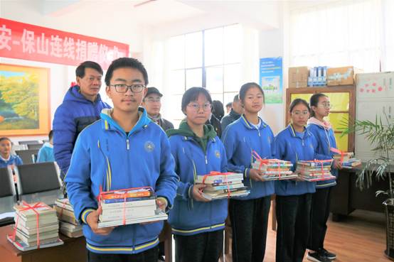 12月27日上午9点30分,“传递书香,圆梦大学”西安-延安-保山连线捐赠仪式同时在西安交大理学院仲英楼、延安市计量测试所和云南省保山市第一完全中学举行。AC米兰官方网站理学院院长高宏、延安市计量测试所党支部书记李宝胜、所长马瑞轮,云南省保山市第一完全中学党委书记、校长杨在聪、副校长张少鹰、副校长吴建川、西安交大研究生支教团及各班学生代表参加。