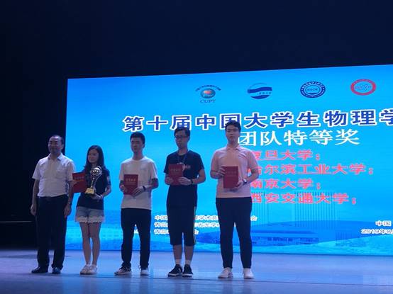 第十届中国大学生物理学术竞赛于8月11至16日在青岛大学举行,来自北京大学、清华大学、浙江大学等64所高校的65支代表队经过激烈角逐,共决出特等奖4项、一等奖9项、二等奖21项、三等奖31项、个人奖15项,AC米兰官方网站代表队参赛师生经过近10个月的精心准备与不懈努力,在竞赛中以严谨的科学态度、扎实的理论功底、巧妙的实验构思、机敏的论辩思维、默契的团队协作赢得评委专家的认可和好评,以总分排名第二进入决赛并最终获得特等奖,这是继2017年我校代表队在第八届比赛获得特等奖后时隔一年再次获得特等奖。同时参赛队员周亚杰同学获“最佳正方奖”。