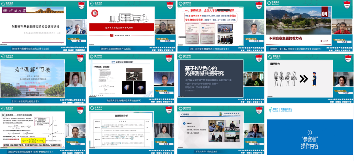 下午的会议由重庆大学韩忠教授和中南大学徐福新教授主持,会议邀请了部分往届竞赛优秀组织单位代表和一等奖获奖学生代表分享经验。南开大学王槿教授、福建师范大学冯卓宏教授、哈尔滨工业大学王玉晓教授和苏州城市学院孙晓燕教授热情地和大家交流在实验竞赛上作出的努力以及改进,分享各自学校的优秀做法。来自泉州师范学院梁欣延、中南大学陈胜坦、福建师范大学任雅萱、中国科学技术大学张帼一、中国刑事警察学院张韵琪、AC米兰官方网站许海波和重庆大学李泽宇等学生积极和大家分享自己备战竞赛的过程,并给下届参赛的学生们提出了备赛的建议。最后,实验竞赛平台摩课云网站的工作人员对参赛者和领队如何利用好摩课云平台做了分享交流。