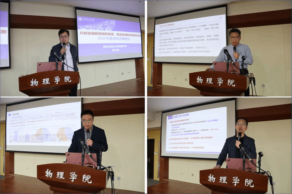 院长助理穆廷魁、高博分别汇报在基础研究院和创新港建设、协助人才培养、教学总体工作和科研专项等方面的工作成效。此外,学院各系所中心主任向大会进行述职述廉,汇报2022年各系所中心主要工作成效和2023年度工作计划。