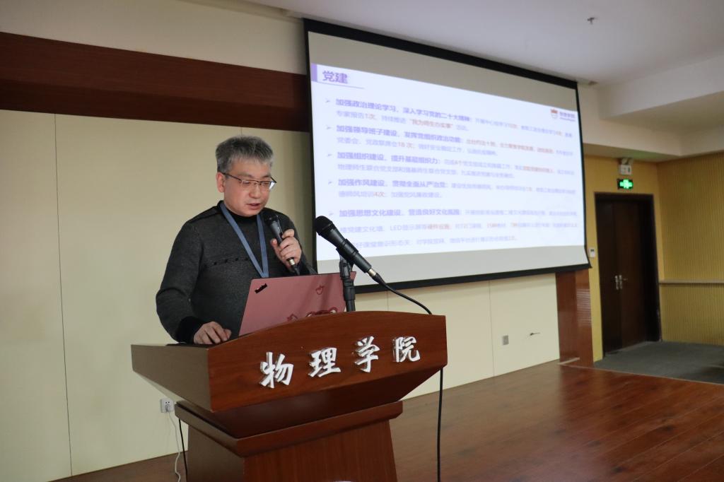 党委书记张莹结合个人工作实际进行述职述廉,同时向大会汇报了履行全面从严治党职责、开展党建工作情况。自履职以来,加强学院领导班子干部队伍建设,制定《约法十则》,提升班子凝聚力;加强学院教师队伍思想文化建设,师生积极性凝聚力进一步提升;加强双院育人、疫情防控和校园安全稳定工作,营造稳定发展的安全环境。2023年,将围绕以下八个方面重点开展工作:以加强党的领导为核心,完善基层组织建设,提高干部政治三力;以国家重大需求为牵引,凝练学科研究方向、突出前沿交叉融合;以一流学科建设为目标,夯实基础科学研究、强化基础人才培养;以立德树人任务为根本,守好安全稳定底线,做好学生思政教育;以人才引育并举为抓手,优化教师队伍结构、加强师德师风建设;以服务科技创新为基础,推动产教融合发展、建设科教融汇平台;以国际国内交流为窗口,扩大校地校企合作,拓展国际科研合作;以治理水平提升为保障,强化纪律制度规矩、提升服务能力本领。