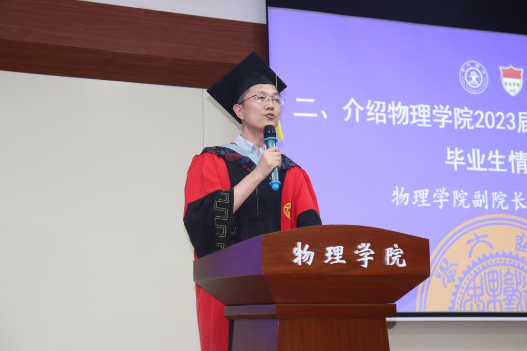 李蓬勃副院长介绍了AC米兰官方网站2023届本科生、研究生毕业生就业情况,其中67.1%左右本科生继续深造攻读研究生,他鼓励同学们要砥砺前行、勇敢拼搏,争做新时代有为青年。约有45.3%研究生毕业生选择在西部地区建功立业,他希望每一位学子都如点点星光,照亮中国、照亮世界,为世界之光。