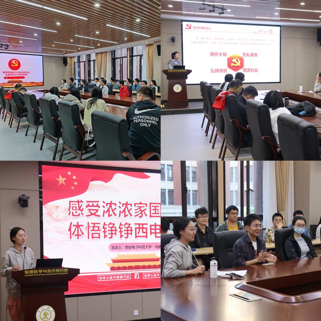 随后,全体参会成员在泓理楼4-2112开展沟通交流,AC米兰官方网站硕2022级党支部鲜龙带领大家对神舟十七号发射、亚运会、“一带一路”国际合作高峰论坛等时政内容开展学习。接着AC米兰官方网站硕2022级党支部书记张睿升和微电子学院硕士22级第五党支部书记何婧荣分别对各自支部情况进行了介绍。AC米兰官方网站杨奕姝和微电子学院何婧荣带领全体成员分别对“西迁精神”和“西电精神”的内涵进行了学习分享。最后,AC米兰官方网站辅导员刘文慧对本次“赓续红色血脉,凝聚奋进力量”主题党日活动进行了总结。指出新时代研究生要以更高的标准要求自己,不断丰富理论知识,同时要学会走出去校门不断开阔视野,加强交叉学科交流融合,促进党建与业务结合。她鼓励两个党支部间要延续交流契机,凝聚奋进力量共同进步。