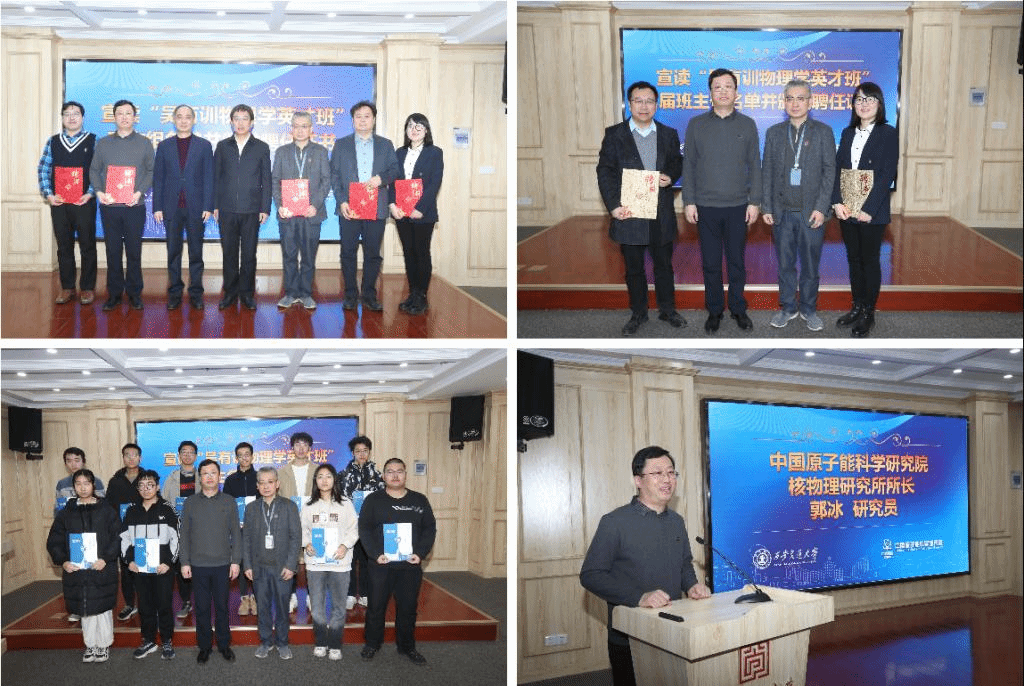 会议宣读了“吴有训物理学英才班”顾问委员会、工作组、首届班主任、首届学生名单,向工作组组长、副组长颁发聘任证书,向首届学生颁发了录取通知书。中国原子能科学研究院核物理所所长郭冰代表工作组作表态发言。