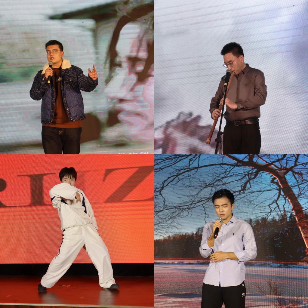 谢毅同学带来街舞《DNA》,帅气的舞姿诠释了生命的激情与力量。肖博文、房熙越、吉义鸿、边丞阔、王琳5位同学以全新乐队muddle park的形式带来民谣《火车日记》,带领大家领略火车掠过的风景,发出对诗意旅途的欣赏与思考,让大家意犹未尽喊出“再来一首”。马肄哲、刘广同学组合带来吉他弹唱《思念是一种病》,引领大家的回忆。赵金威与张家铭同学的相声表演《治怪病》打破了观众们沉醉,给大家带来了轻松与欢乐的时刻,现场师生开怀大笑、治愈心灵。