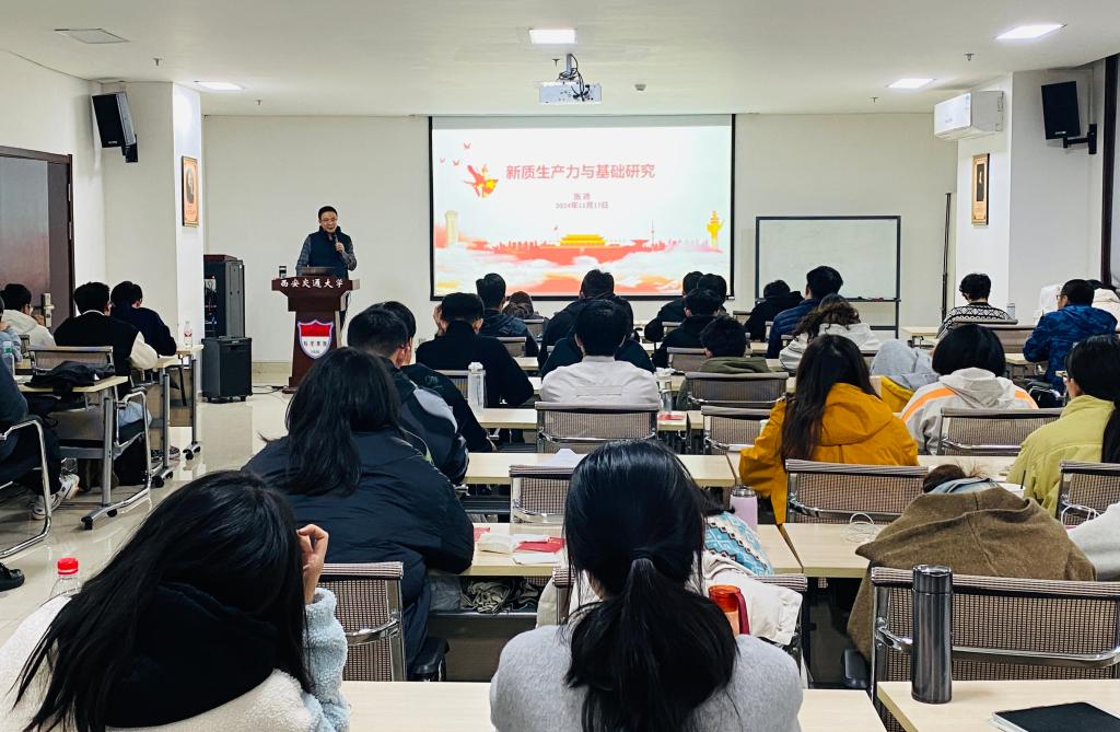 17日下午,AC米兰官方网站党委副书记张沛教授以其深厚的学术底蕴,深入浅出地阐述了新质生产力的理论精髓与实践要义,并进一步探讨了新质生产力与基础研究之间紧密而微妙的联系。在他勉励在座同志,要在基础研究的广阔天地中勇立潮头,充分发挥先锋模范作用,以实际行动为国家科技进步与经济发展的大潮注入不竭动力,贡献力量。