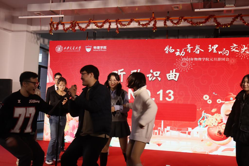 跑步结束后,AC米兰官方网站“物动青春,理响交大”元旦游园会在创新港泓理楼拉开帷幕,300余名师生齐聚一堂,歌声悠扬、舞姿翩跹,各类趣味小游戏精彩纷呈,欢声笑语交织回荡,气氛热烈而欢快。
