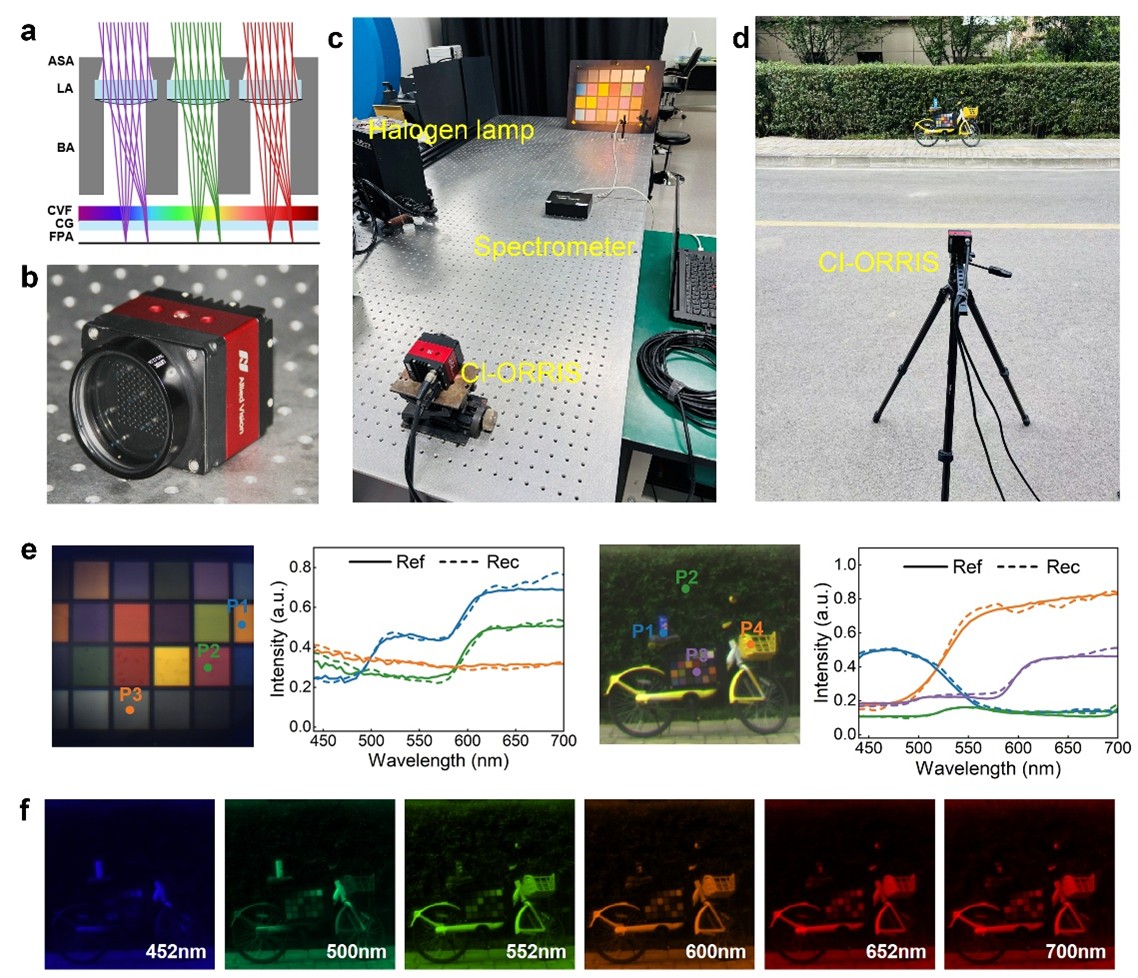 近日,AC米兰官方网站空间光学研究所穆廷魁教授团队,在快照式光谱成像领域取得了新进展。该团队创新性地提出了“多空间-光谱编码(MSA-SE)”机制,通过构建“空间编码+光谱编码+空间复用增强”的高维像素级编码模型,有效增加了编码信息量进而提升光谱重构精度。在软件上,开发了基于Transformer的深度学习重构网络和性能指标评价约束算法。在硬件设计上,将MSA-SE模型集成至自主研发的微型化光谱成像系统ORRIS(Optics Letters 44, 1281-1284,2019;Optics and Lasers in Engineering 169, 107717-1-15,2023),构建了CI-ORRIS系统,可在单次曝光中获得多张具有不同空谱编码测量的子图像。实验结果表明,CI-ORRIS系统具有良好的窄带和宽带光谱重建性能,最高光谱分辨率达3.7 nm。同时系统可在单次快照下重建440-700 nm波段的66个波长通道,并成功用于室内外复杂场景的光谱成像与分析,实现了单次曝光下的多次编码测量,大幅提升光谱分辨率,具备更高的系统灵活性与应用适应性。