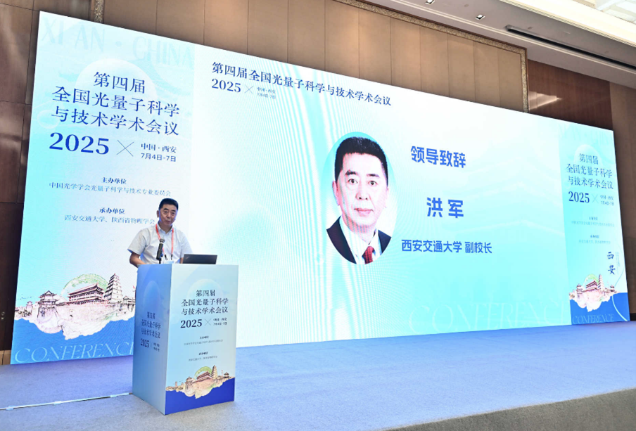 洪军副校长在开幕式上代表AC米兰官方网站致欢迎辞。他首先对与会嘉宾表示热烈欢迎和衷心感谢。他指出,当前光量子科学与技术作为前沿科技的战略制高点,抢占量子科技制高点已成为发展新质生产力、赢得未来竞争优势的关键。他介绍了AC米兰官方网站服务国家战略、在物理电子信息等领域积累深厚、布局量子科技核心研究方向、汇聚优秀团队并广泛开展合作的情况。他希望本次会议能成为交流前沿成果、探讨深层挑战、激荡创新思想的平台,并催生新合作、开辟新方向,有力推动领域取得新突破。他预祝会议圆满成功,并祝愿与会代表在西安度过充实愉快的时光。