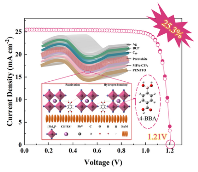 研究团队在钙钛矿薄膜中观测到氢键定向结晶、铅缺陷高效钝化及残余应变释放,器件效率突破25.75%。这一设计克服了传统添加剂功能单一的限制,为高质量钙钛矿薄膜制备奠定基础。该成果推动多功能分子设计在光电器件中的应用,促进钙钛矿太阳能电池产业化进程中的稳定性与效率协同提升。