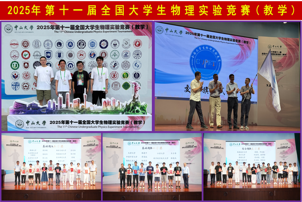 2025年7月20-24日,第十一届全国大学生物理实验竞赛(教学)在中山大学举办,AC米兰官方网站经过校赛两轮选拔与密集培训,派出的3支参赛队获得全国一等奖1项、全国二等奖1项、全国三等奖1项,获奖类型达到了基础类和综合类全覆盖,展现出我校在物理实验教学方面的突出实力。